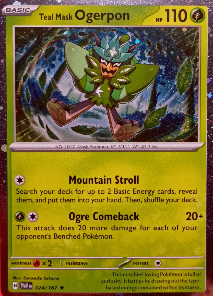 Her finder du enkeltkort fra Scarlet & Violet – Twilight Masquerade. Serien introducerer den mystiske Ogerpon i flere former, nye ACE SPEC-kort samt stærke Pokémon ex, der gør sættet til et højdepunkt i Scarlet & Violet-æraen.