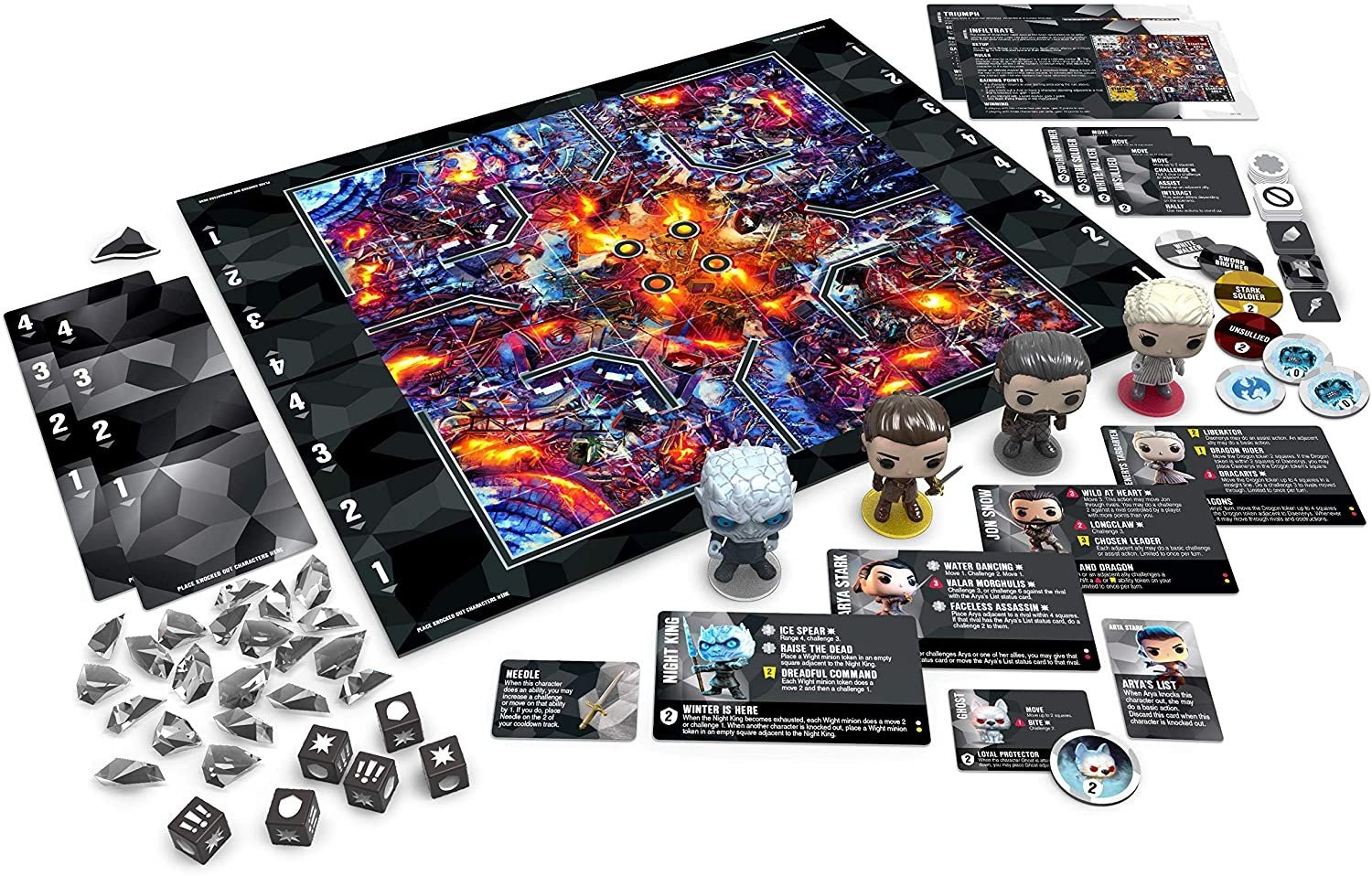 Daenerys Targaryen, Night King, Jon Snow og Arya Stark er på et iskoldt eventyr med Funkoverse, et strategispil, der bringer de verdener, karakterer og historier, du elsker hjem, for dig at nyde igen og igen.
