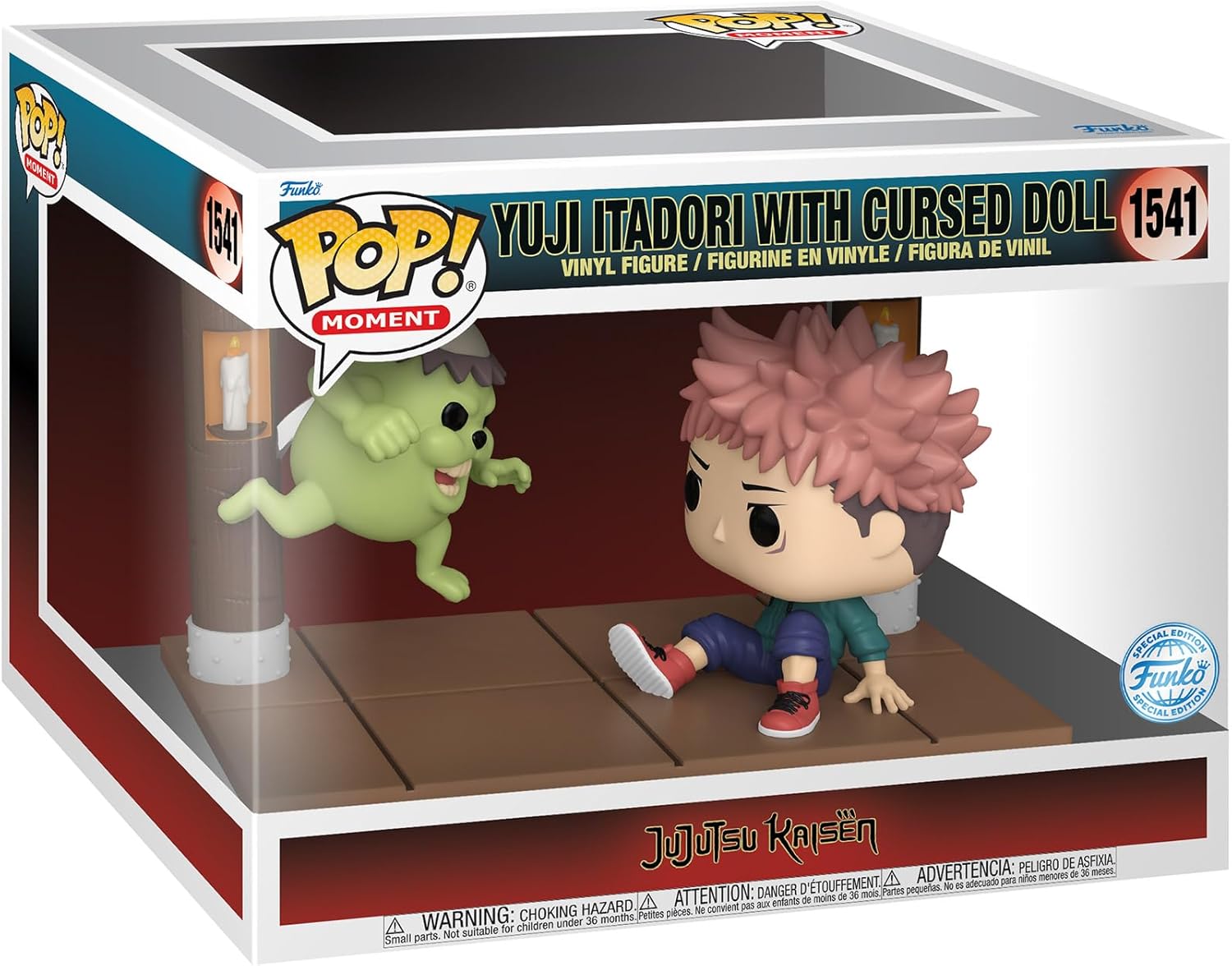 Fang et ikonisk øjeblik fra Jujutsu Kaisen med denne POP! Moment af Yuji Itadori, der står side om side med sin forbandede dukke. En must-have til anime-samlere, der vil have de mest mindeværdige scener stående på hylden.