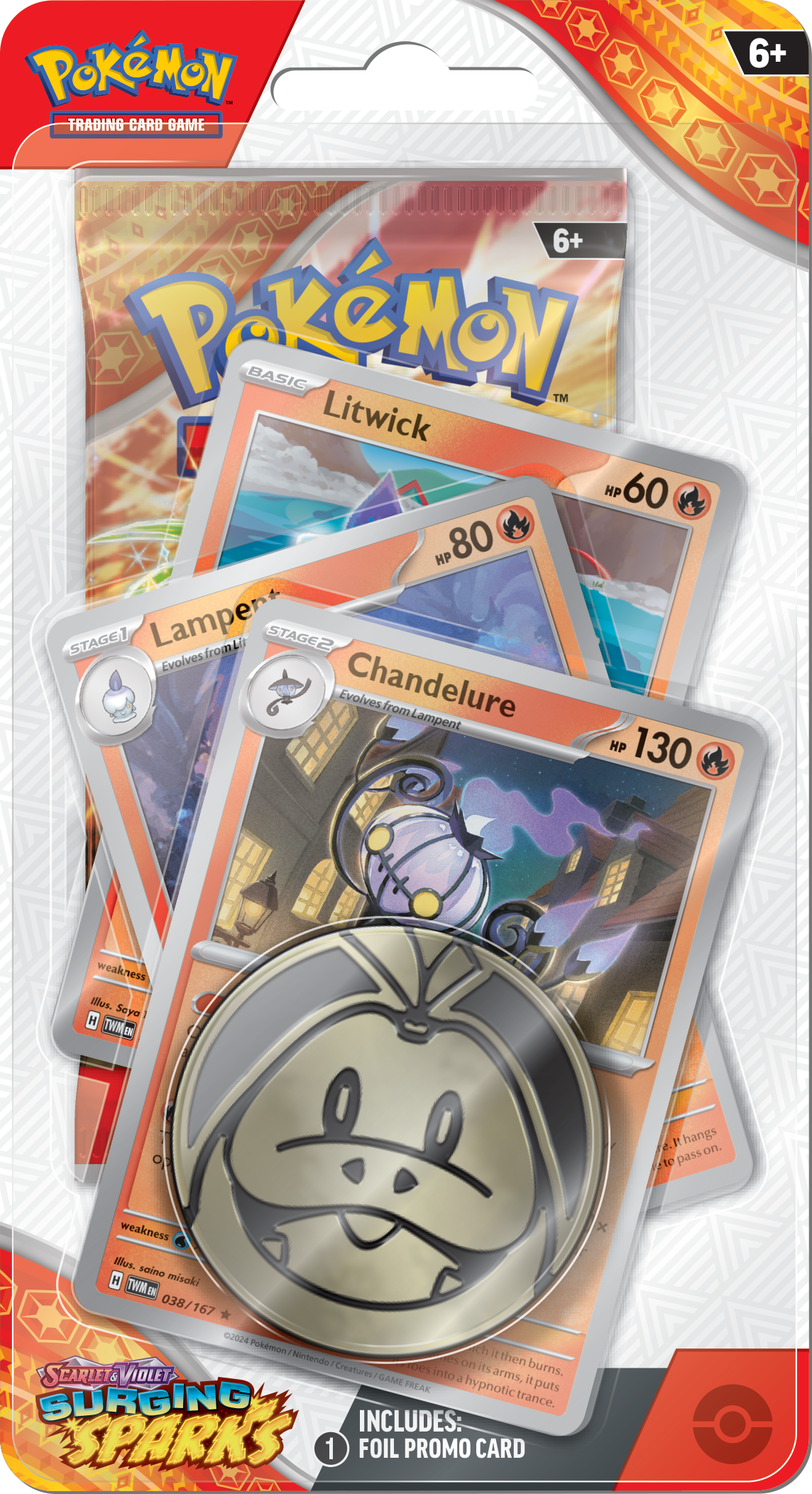Terawatt af elektricitet styrter ned fra himlen i et tropisk paradis og sætter scenen for den superladede Pikachu ex! Med kraften fra en Stellar Tera Pokémon ex lyser den kystlinjen op og afslører en parade af drage-Pokémon ledet af den tårnhøje Alolan Exeggutor ex! Archaludon ex og Latias ex fuldender horden, mens nye ACE SPEC-kort og flere nye Pokémon ex bringer deres egne overraskelser. Strømme knitrer, og drager brøler i Pokémon TCG: Scarlet & Violet—Surging Sparks-udvidelsen!