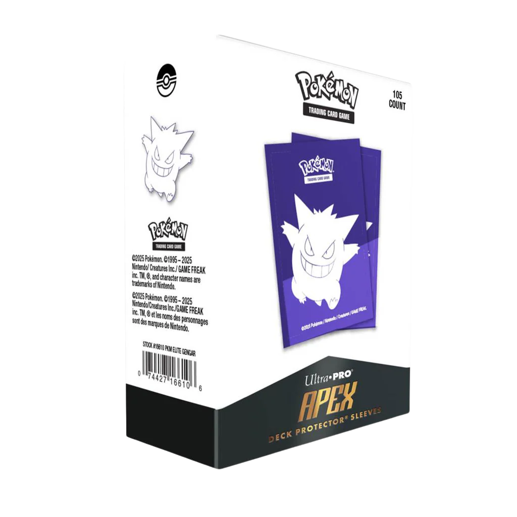 Opgrader dit deck med officielle Pokémon-sleeves fra Ultra PRO med Gengar artwork. APEX Deck Protector Sleeves er lavet til spilbrug, så du får en solid beskyttelse mod slid og ridser - samtidig med at decket stadig er nemt at blande.